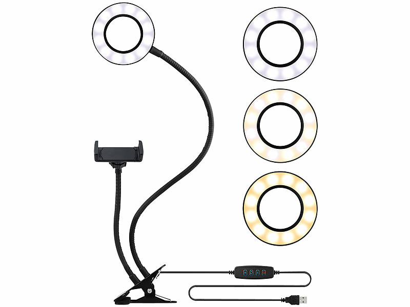 - Anneau lumineux LED avec support pour smartphone, par Somikon