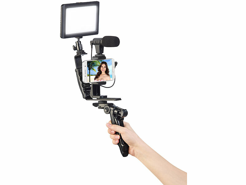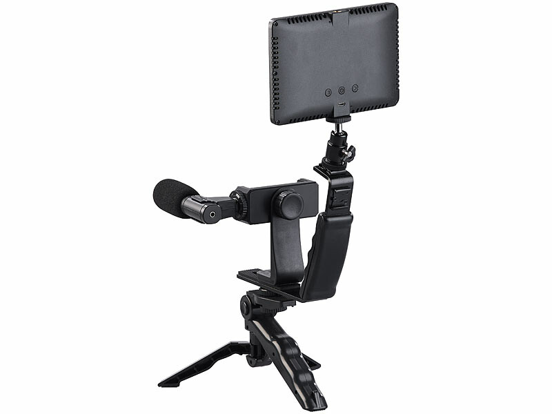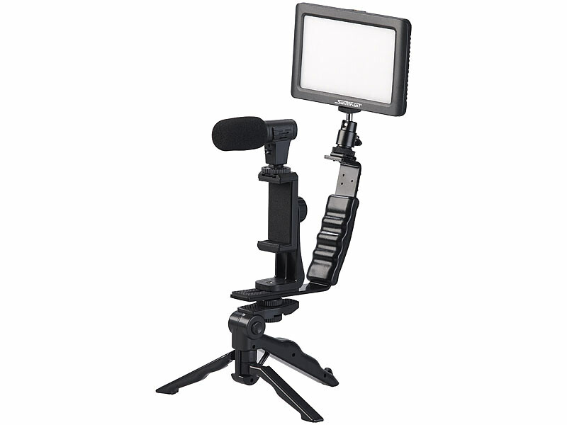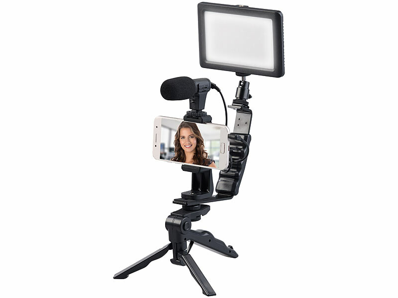 - Kit de vlogging complet avec lampe LED, microphone, trépied et support, par Somikon
